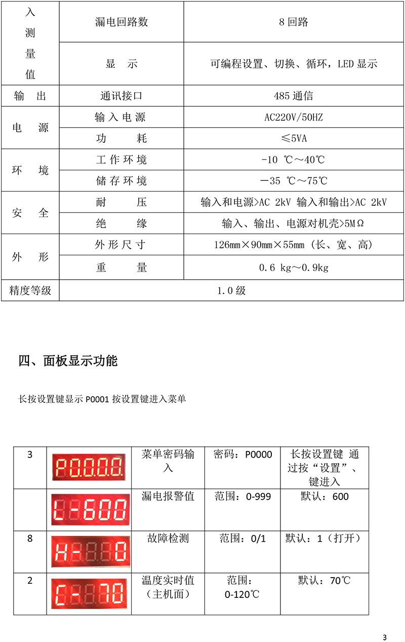 面板式火災8路 電氣火災探測器說明書