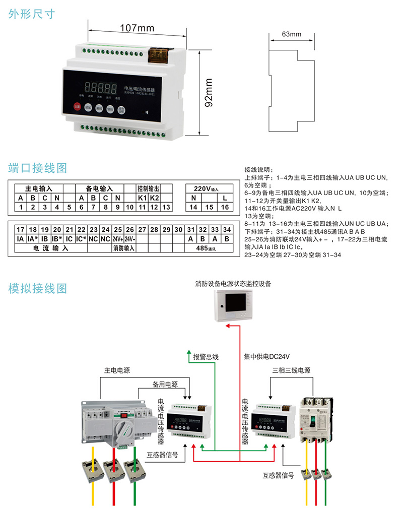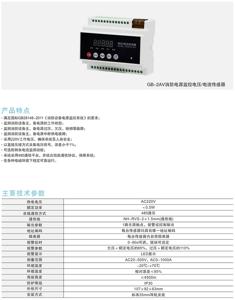 GB-2AV消防電源監(jiān)控電壓/電流傳感器
