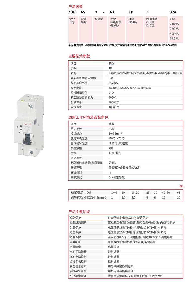 ZQC65s-63/1P系列 智慧物聯網小型斷路器